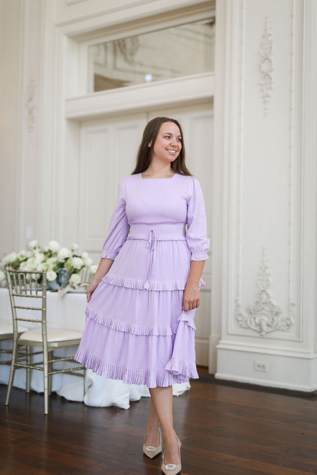 - Why it works: Modest dresses in pretty pastels or floral prints fit the celebratory and often feminine vibe of showers perfectly.
