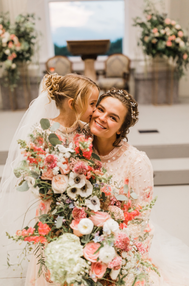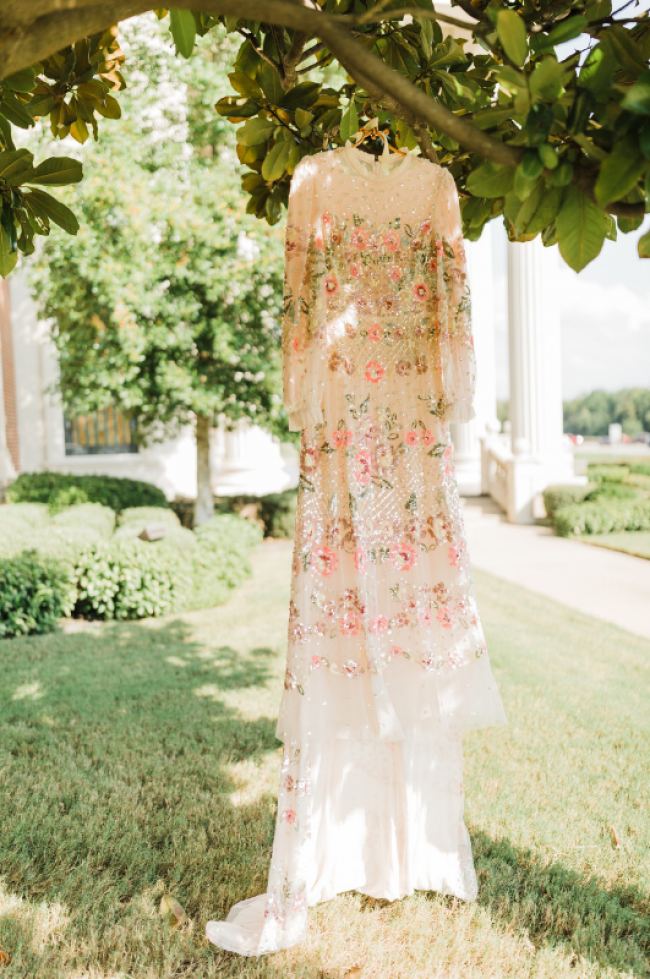 I have never wanted the white “traditional” dress. When I came across my dress on Needle & Thread, I KNEW it was exactly what I wanted! The only downfall was it did not have a train, so I bought two of the same dress and had a train added. The leftover material was used for my miniature bride. I do regret not going to try dresses on, but I knew I would end up finding another one I probably would have liked, and I didn’t want to be stuck making a decision between the two.