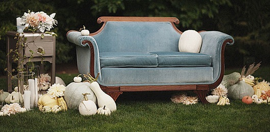 What I’ve found is that most brides use artificial pumpkins or spray paint orange ones white – both practical (and cheaper) options. Keep in mind that once a live pumpkin is cut, it will only last a few days, though refrigerating will help it last longer. One farmer recommends wrapping pumpkins in plastic before refrigerating them. Heat and moisture will ruin pumpkins quickly.