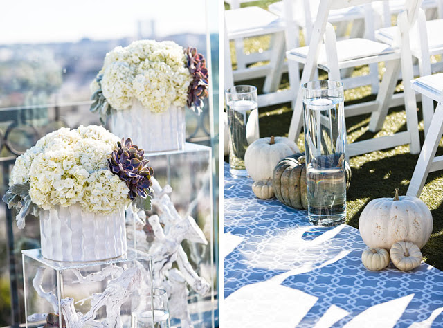 I love pumpkins; seeing them in stores feeds my anticipation of the holidays soon to follow. Orange pumpkins are pretty and can definitely be used for weddings, but because they’re often associated with Halloween, white pumpkins can lend a more fresh, modern, and festive air. They’re also more elegant in general.