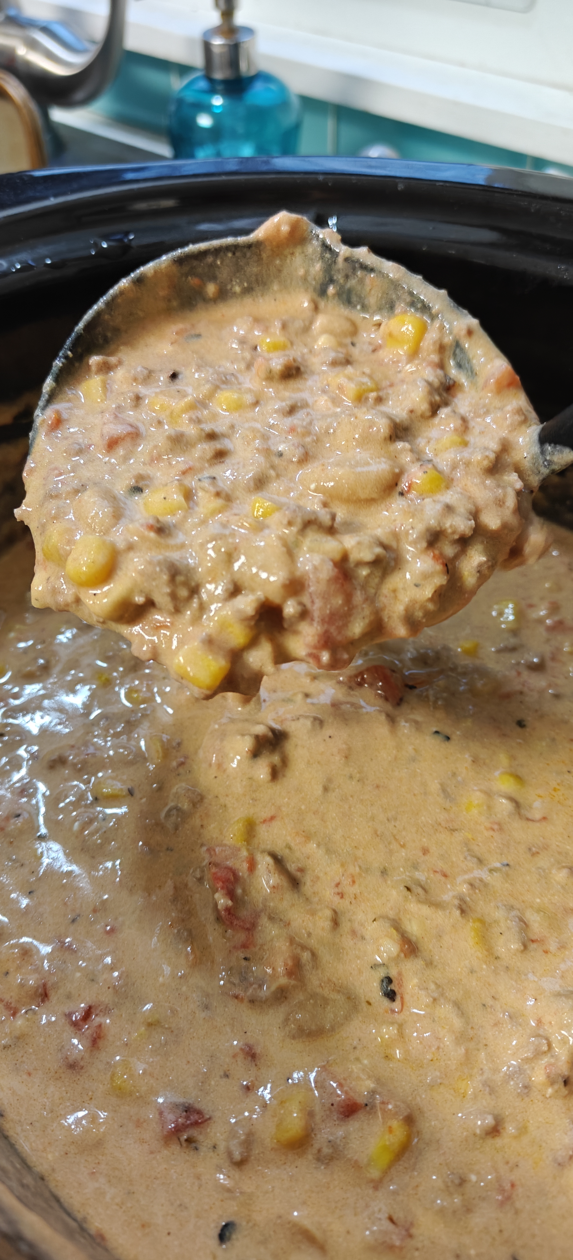 If the chili is too thick, add about 1/4 cup of water or heavy cream and stir. Serve hot in nice big bowls, load up with your favorite toppings, and enjoy!