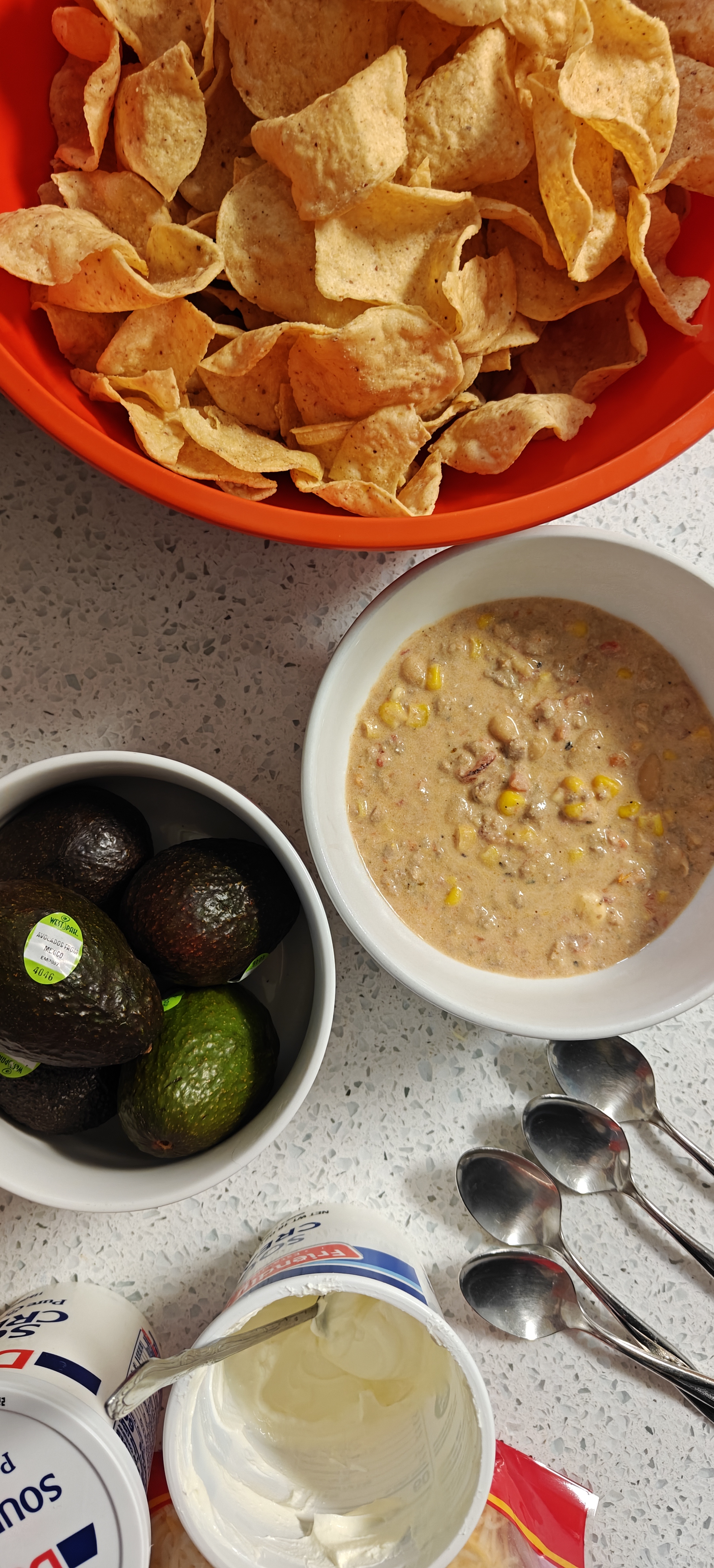 Topping Options: sour cream, shredded Mexican cheese, fresh avocado and tortilla chips (I love the hint of lime tortilla chips too!)