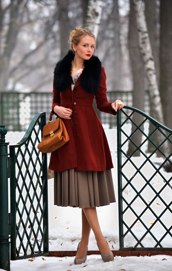 And this coat. Oh, this coat! It is the epitome of class with it’s richly deep colors, and the black fur collar give to give it the finishing touch. You could either give it a vintage look by wearing brown or a classic look by wearing black. What I admire about this ensemble is how timeless and modest it is.