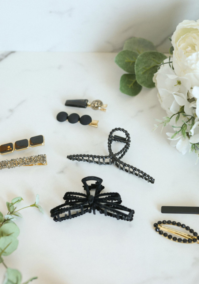 - Claw clips: Claw clips are a fun and trendy hair accessory and are perfect for pulling your hair up during the winter months. Need some hair tutorials for using claw clips for long hair? Look at these videos here, here, and here!