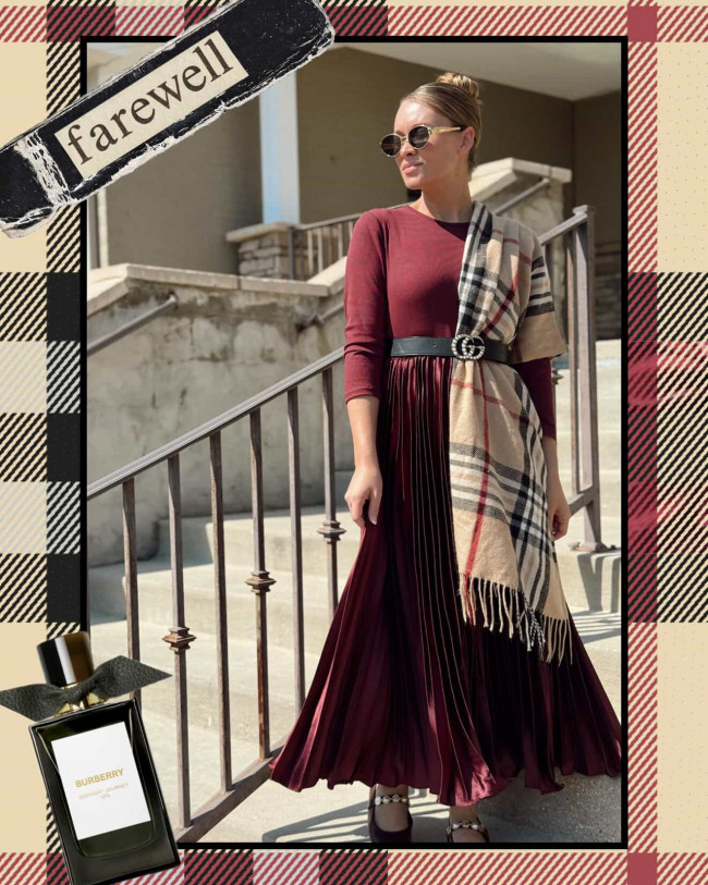 This entire outfit is giving old money vibes! A plaid scarf draped over one shoulder and secured with a belt creates such a classy look. Add some sparkly flats like Mandy did for a touch of glamor!